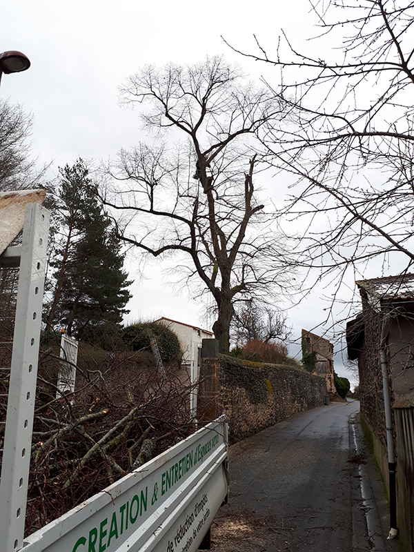 Élagage de soin et d'éclaircissement : Suppression des branches abimées , sèches, éclaircissement des branches pour diminuer la prise au vent et les risques de casse et/ou de maladie.